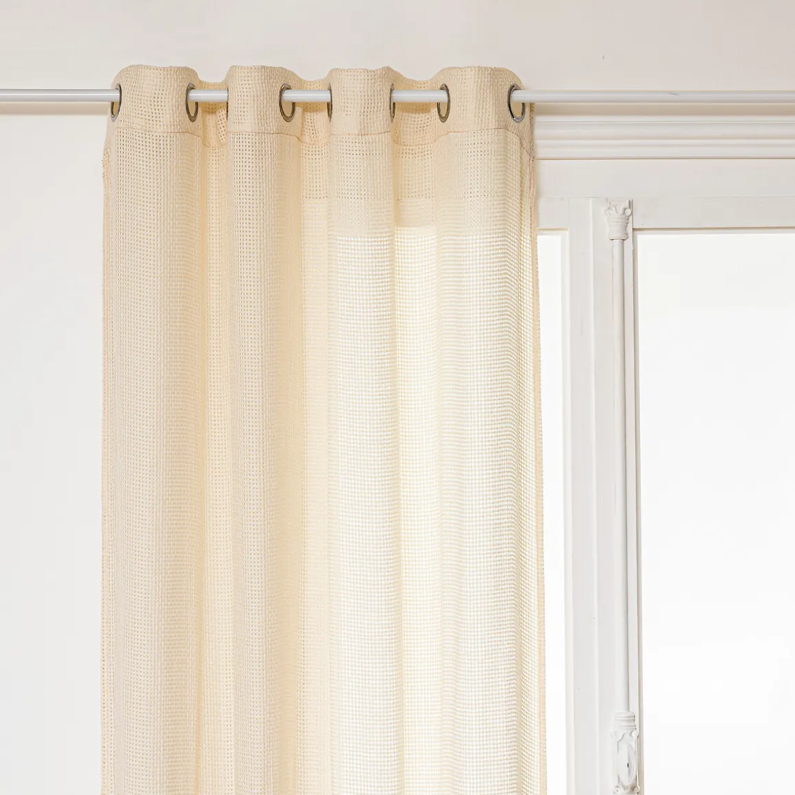 Très élégant, ce voilage léger vous permettra de filtrer la lumière tout en vous abritant des regards. Lavable en machine, il est facile à vivre et se glisse simplement sur une tringle grâce à des oeillets métalliques. Il s’adaptera à une fenêtre de grande hauteur.